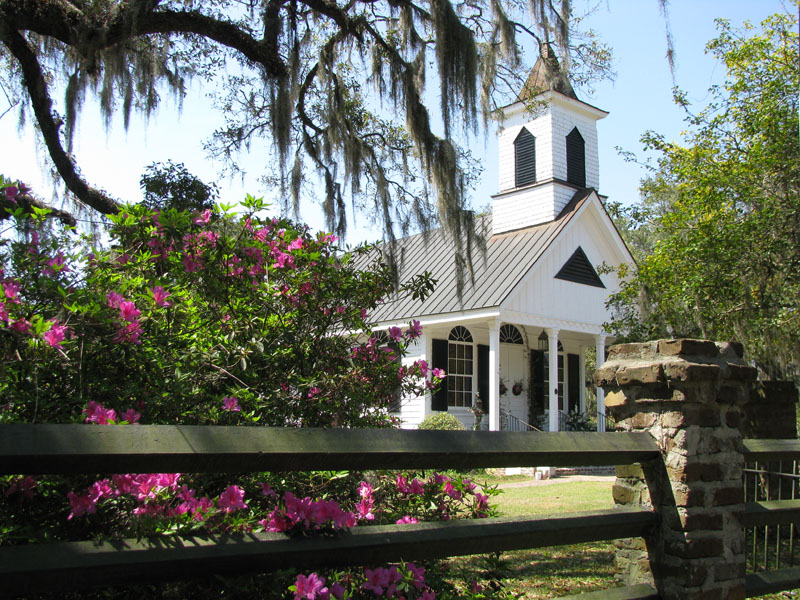 Description: The current church was rebuilt after the Civil War, and restored after fire and hurricane damage. A former slave created the fine interior woodwork of different shades of heart pine. |